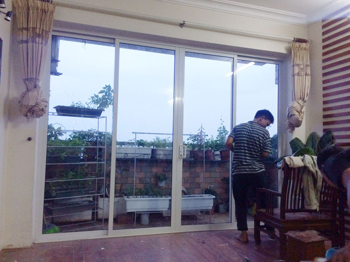Mô tả: Lắp đặt, thi công cửa lùa nhôm kính 2 cánh, 4 cánh cho nhà anh Út, biệt thự An Phú quận 2 TPHCM