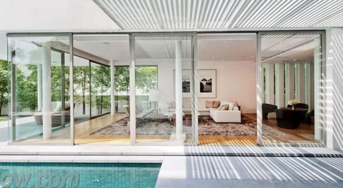 - Cửa đi 4 cánh mở trượt giúp mở rộng không gian, tạo được tầm nhìn bao quát cho công trình.